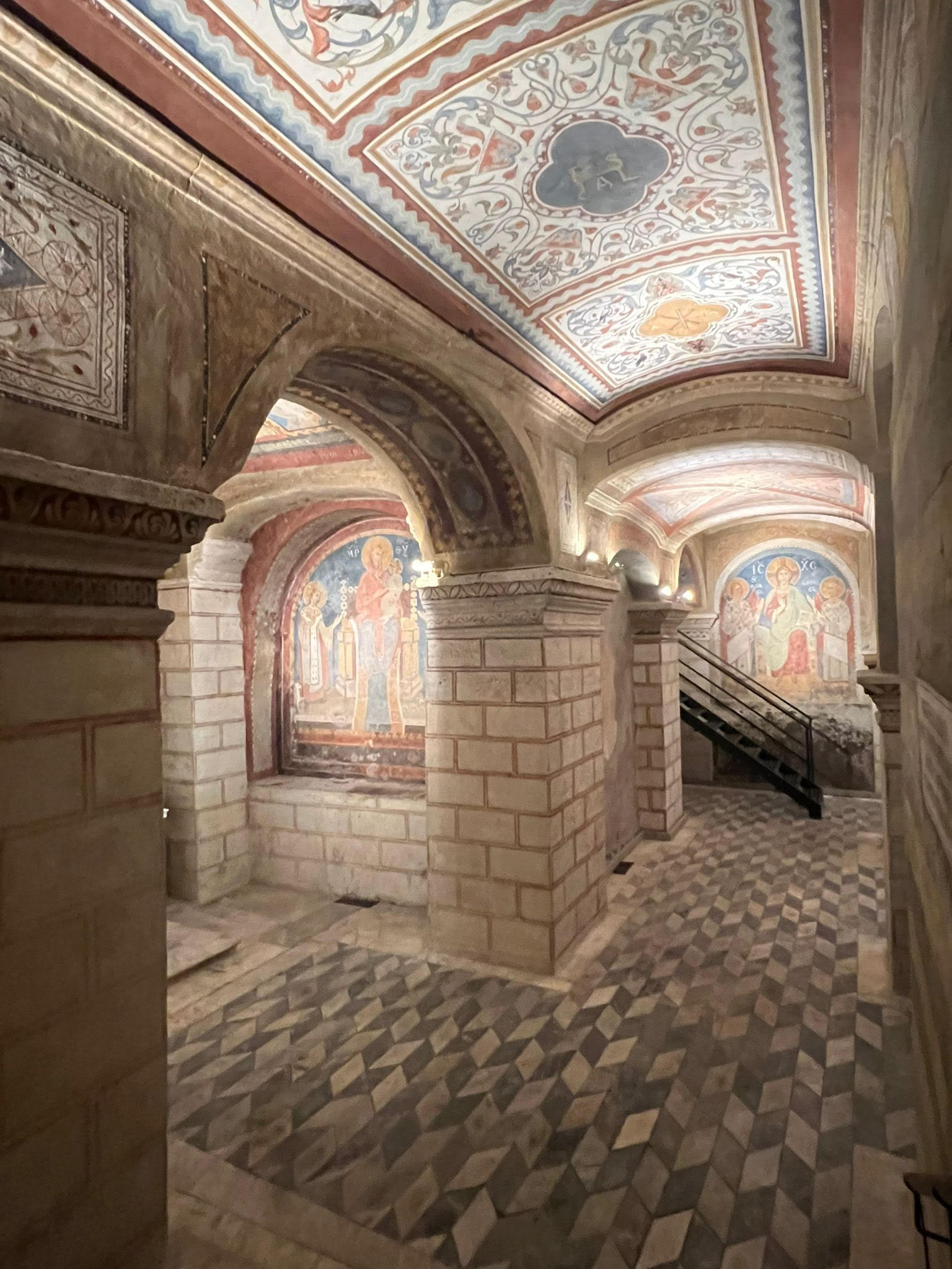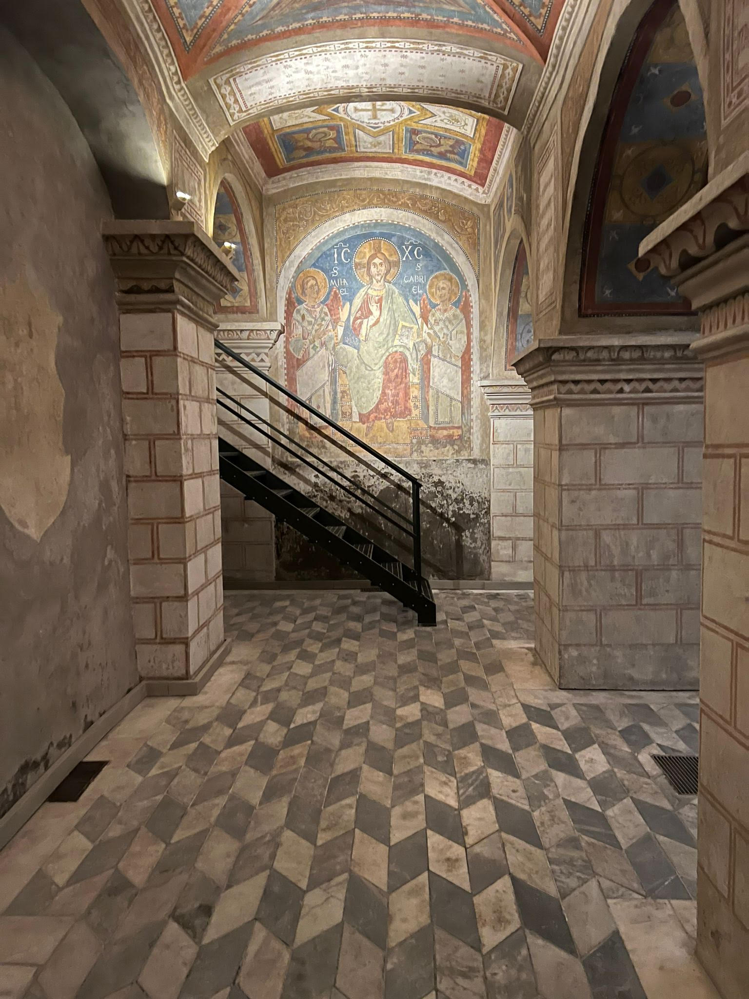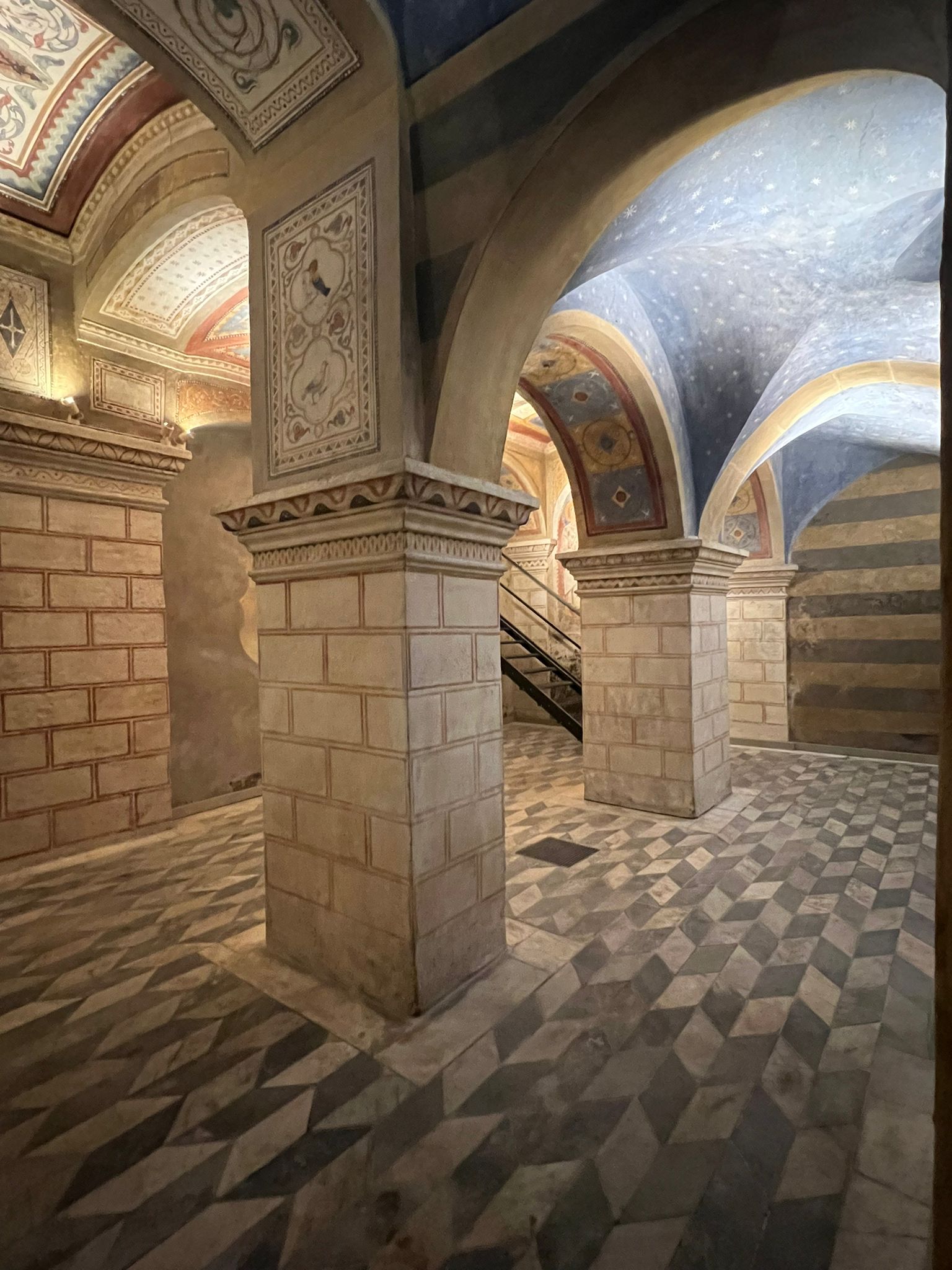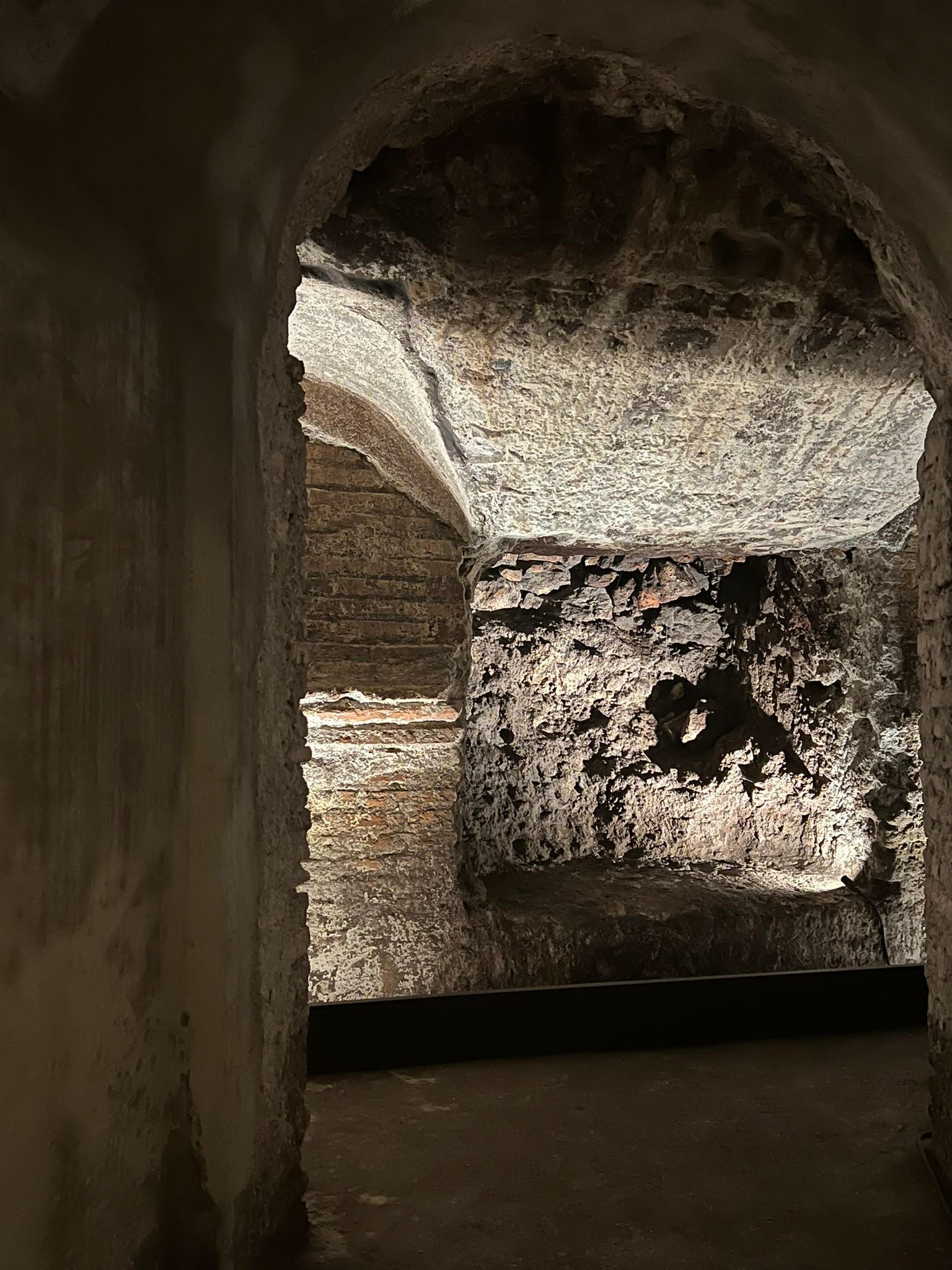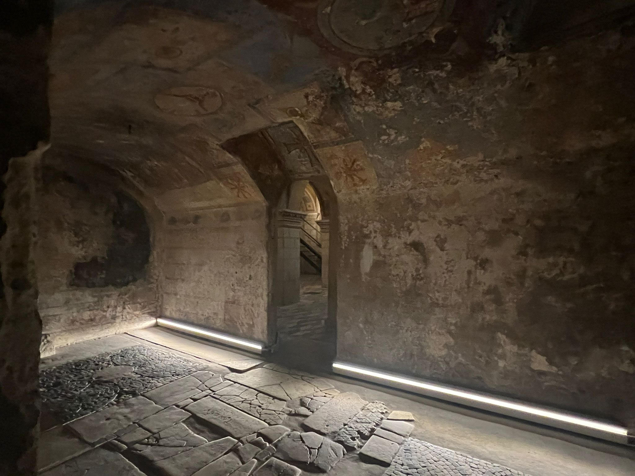La nuova illuminazione per la Cripta di Sant’Agnese in Agone è stata pensata per garantire un’atmosfera intima e sobria, che la natura ipogea dello spazio e la storia drammatica che racchiude, impongono. La presenza di superfici pittoriche su tutte le superfici ha reso particolarmente complesso l’inserimento di elementi tecnologici e il contenimento dell’impatto visivo in uno spazio caratterizzato da dimensioni, soprattutto altezze, così contenute. La logica è quella della totale reversibilità dell’intervento che potrà essere disinstallato in qualsiasi momento senza lasciare traccia. Tutti gli elementi tecnologici sono stati verniciati in sito da restauratrici al fine di garantire un elevato livello di mimetizzazione, pur dichiarando la sua natura di elemento tecnologico distinguibile dal manufatto in fase di percezione ravvicinata. Tutti gli apparecchi sono dotati di ottiche e di accessori frangiluce, calibrati sulle geometrie degli oggetti da illuminare, sugli effetti chiaroscurali desiderati e sul contenimento dei fenomeni di abbagliamento dai punti di vista principali. In particolare, nello spazio che precede la cappella del martirio, caratterizzato dalla presenza di una pavimentazione molto materica e ricca di altorilievi, è stato realizzato un sistema di illuminazione lineare a radenza che ne aiuta la lettura attraverso la calibrazione di luce ed ombre. La complessità dello spazio ipogeo si conclude in un volume rialzato che consente la visione delle mura dello stadio di Domiziano, dove un sistema lineare di illuminazione inserito in una struttura a basso impatto visivo, consente la lettura delle diverse tecniche di costruzione delle murature romane senza possibilità di vedere le fonti luminose e quindi in condizioni di massimo comfort visivo.