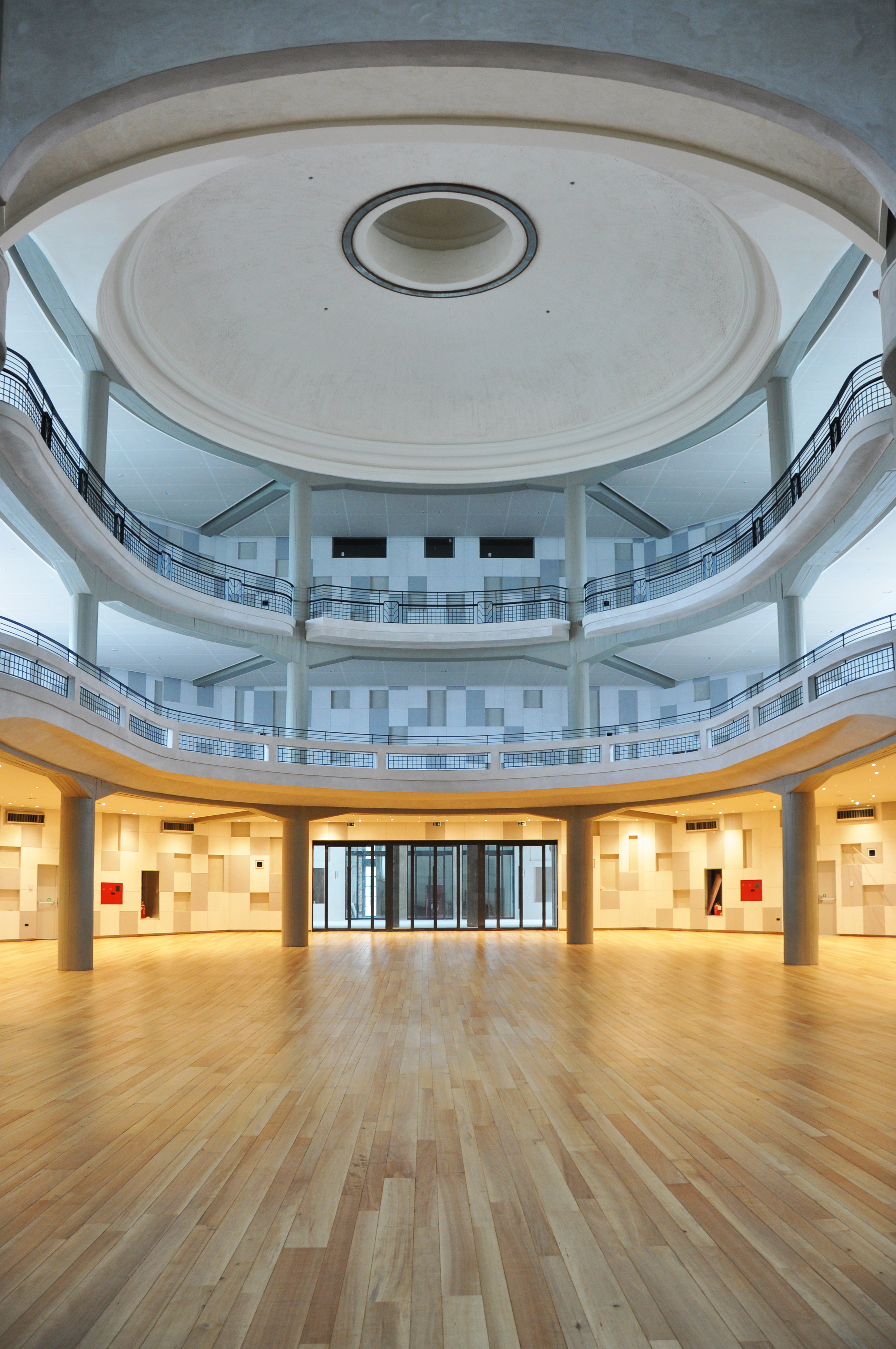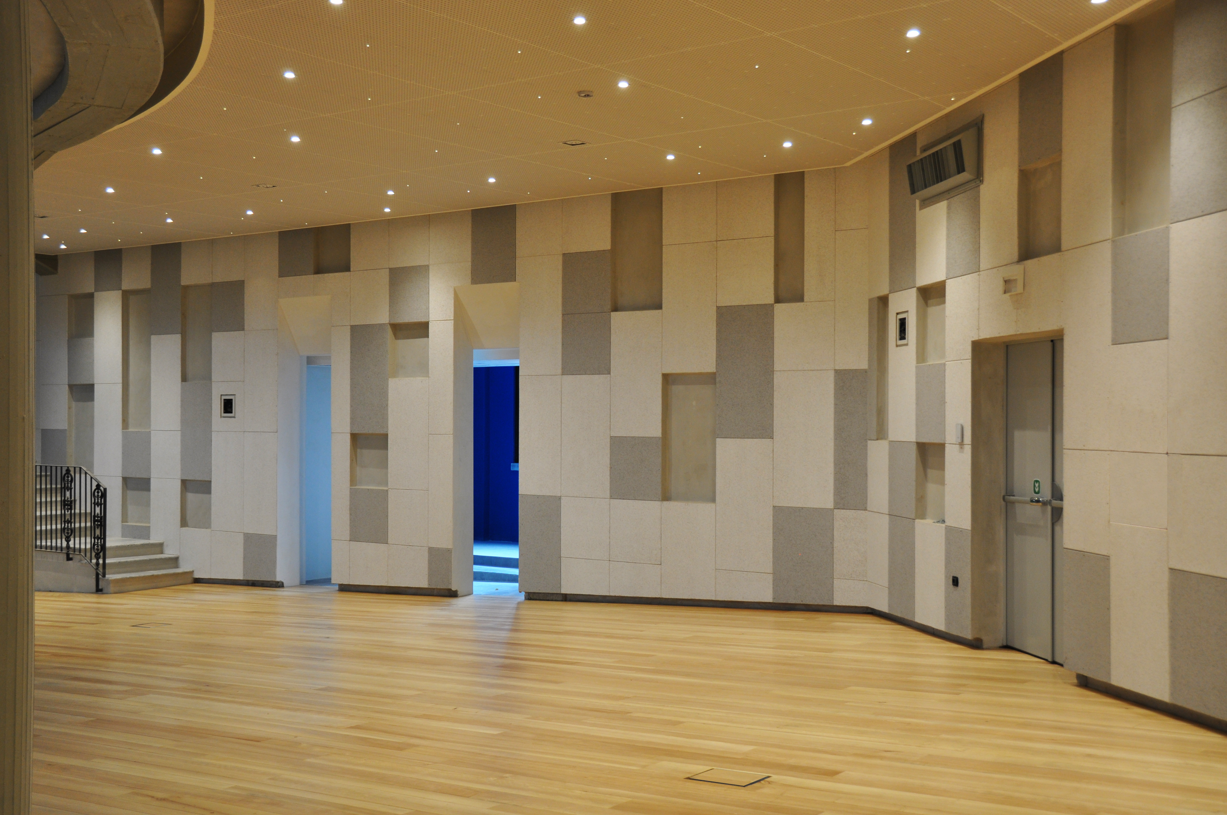 The lighting project was developed with the aim of creating theatrical and exhibition settings at the same time enhancing the spatial and architectural characteristics of the place; The spaces for the show will be enhanced through the use of different compatible and interchangeable systems. The interchangeability between exhibition spaces and performance spaces is guaranteed in the scenic tower and in the hall by the installation of two circular trusses which, thanks to a system of winches, can vary their height. In the case of the scenic tower, the circular truss is designed to house stage projectors while in the case of the Hall, the truss, in addition to housing the luminaires for the show, acquires further aesthetic and functional value thanks to the superimposition of two further systems: lighting from the inside of a translucent fabric shell and the installation of adjustable, high-efficiency floodlights around the entire external perimeter of the circular truss. A suspension system was also designed for the general lighting of the Foyer, in this case it is a network of lightweight aluminum profiles that overlap form an octagon that respects the visual permeability towards the center of the roof. On the network of aluminum profiles, rigid LED strips are installed in two different positions to obtain both direct and indirect lighting.